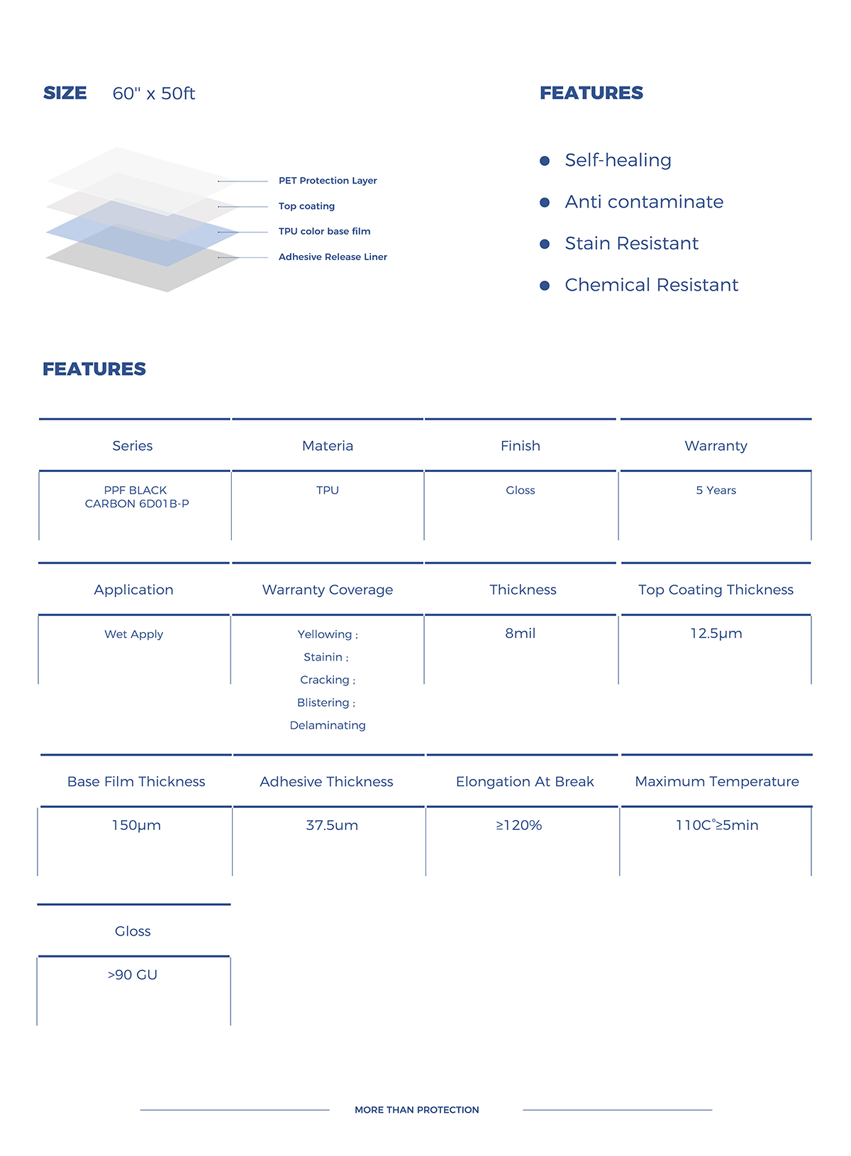 Folia posiada wszystkie właściwości folii PPF, m.in. hydrofobowość oraz samoregenerację.